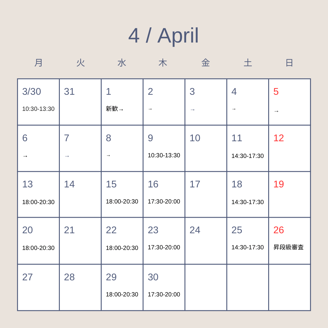 4月日程